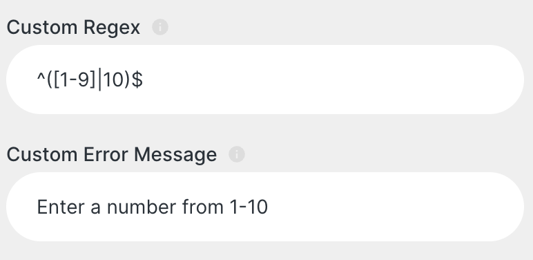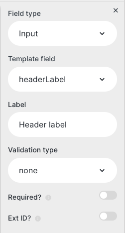 Input fields allow users to enter text or numeric information. The template field, label, and validation rules can be customised to suit your requirements.