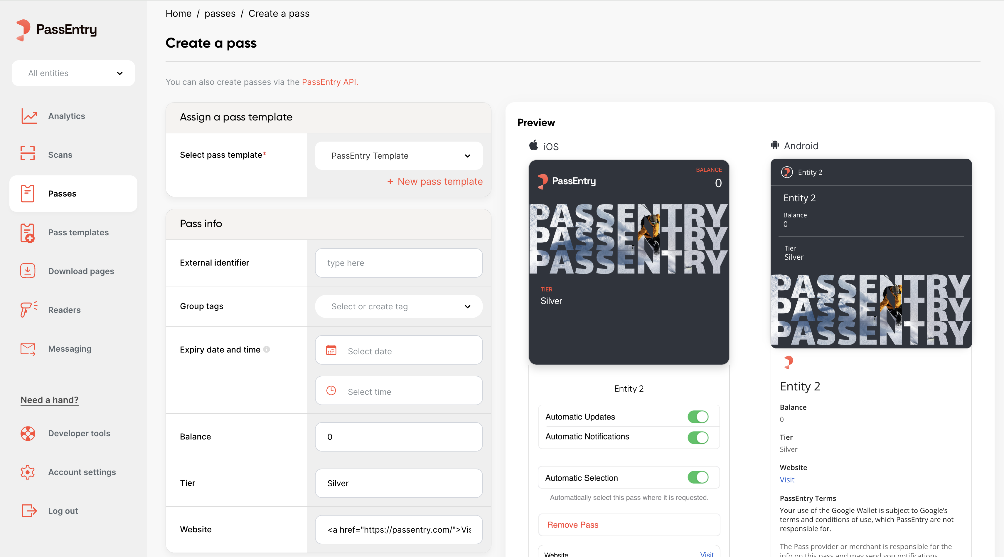 - API automation. Automate pass issuance and updates from your backend. Learn more: API reference